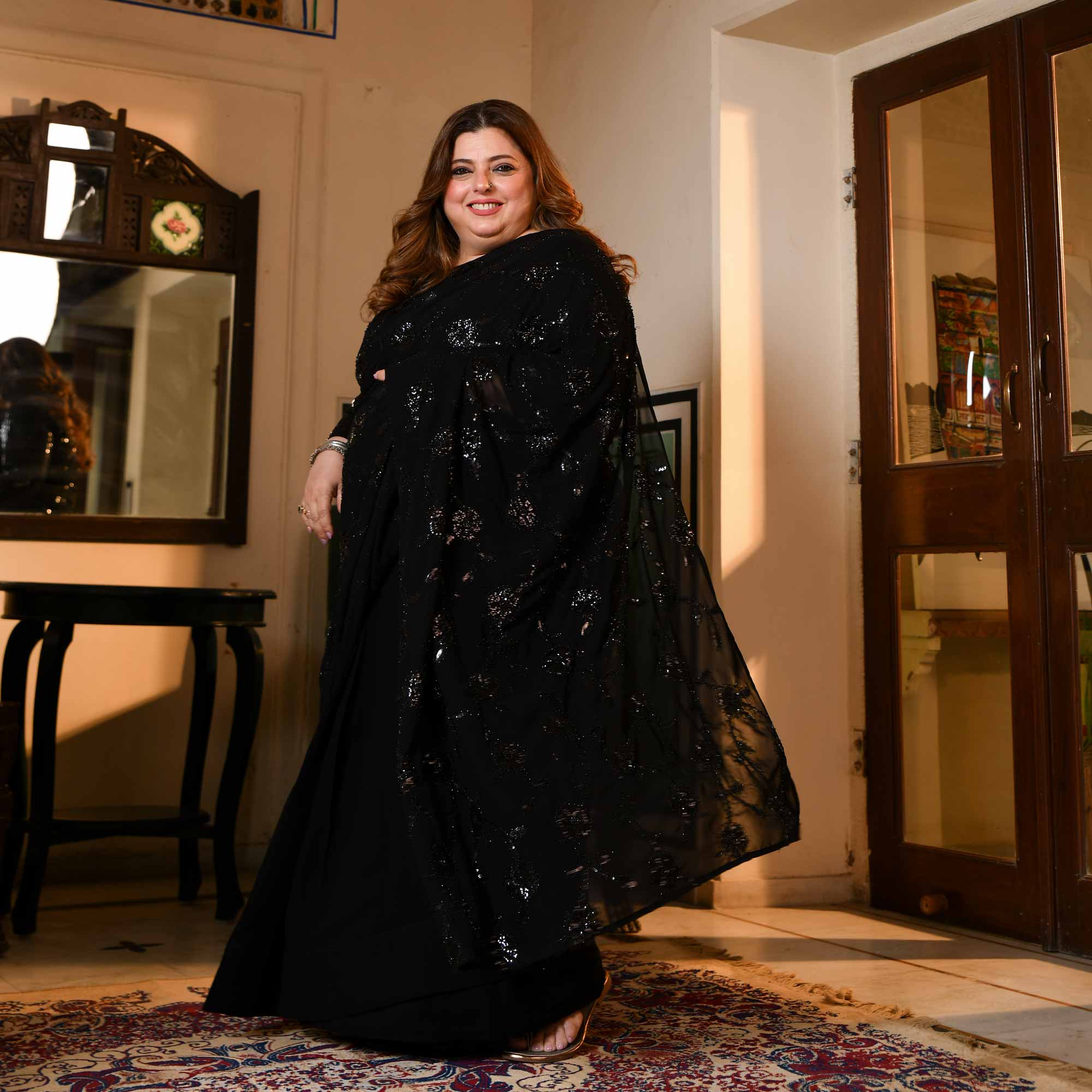 Her Highness- Black Georgette Cutdana & Sequin Embroidered Drape Saree