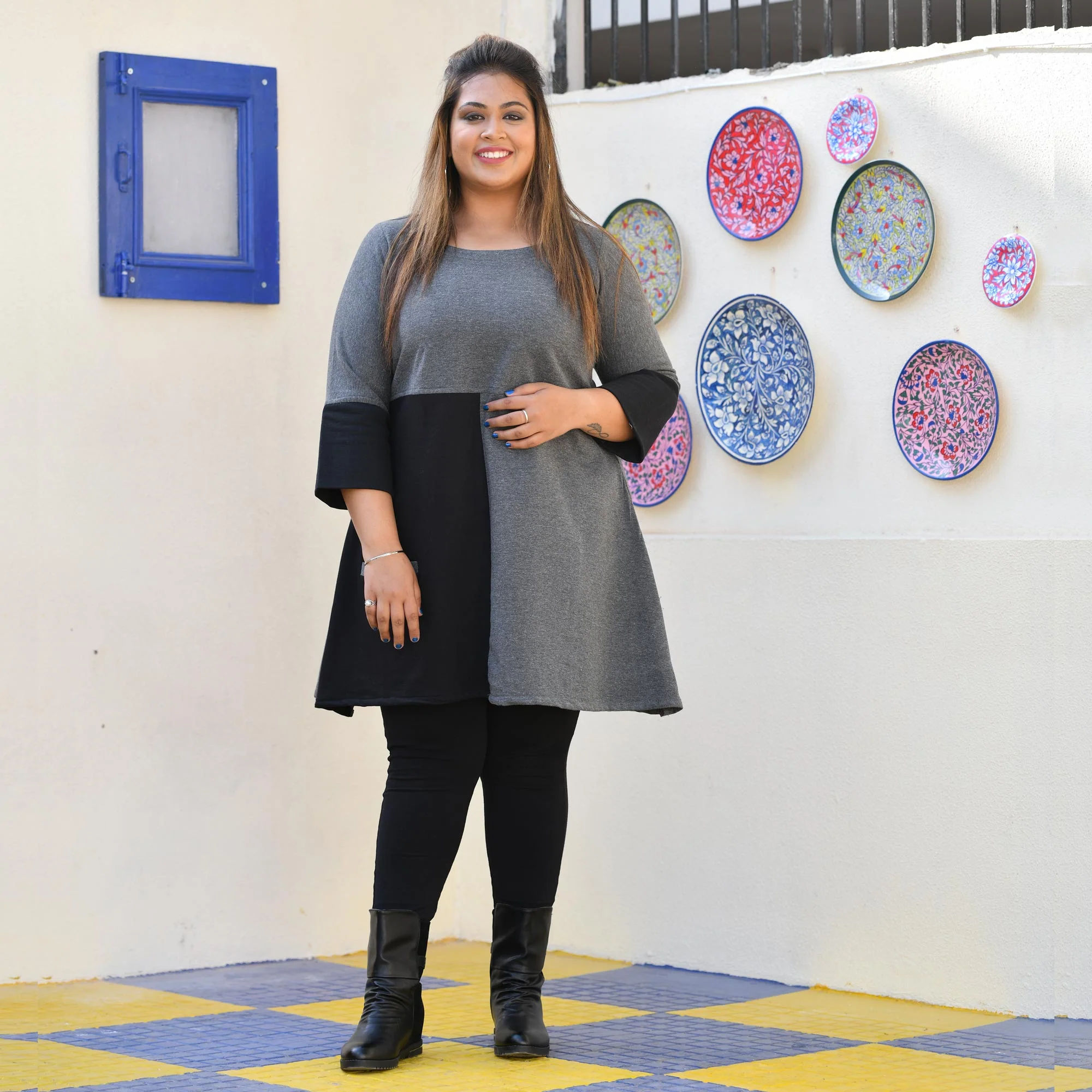- Stay sassy and warm this winter season in our AW21 collection.- This Grey & Black woolen fleece top is set to keep you event-ready even on the coldest of winter days.