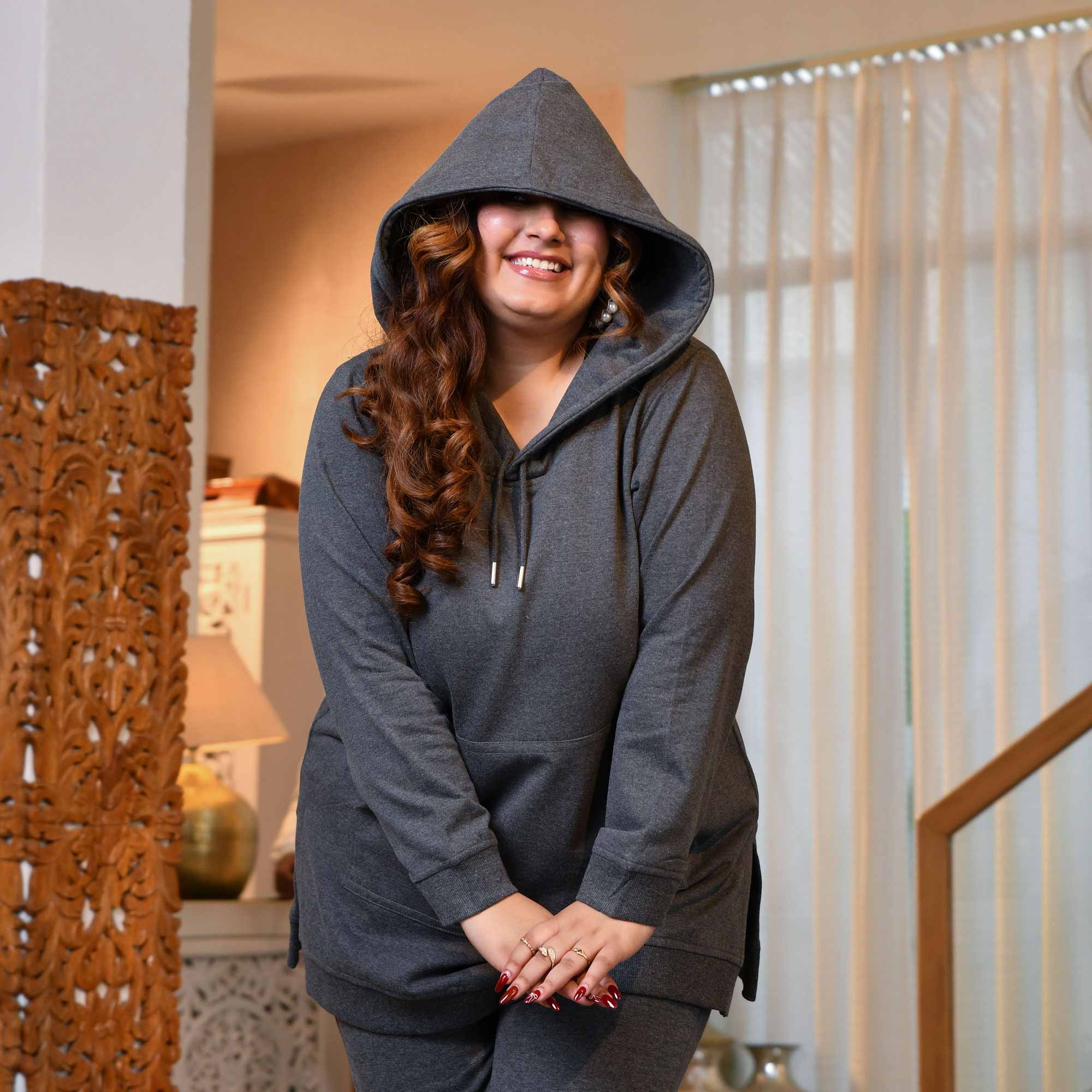 - Uncover the Steel Grey Woollen Fleece Pullover Hoodie with Side Slits – an essential addition to your wardrobe."